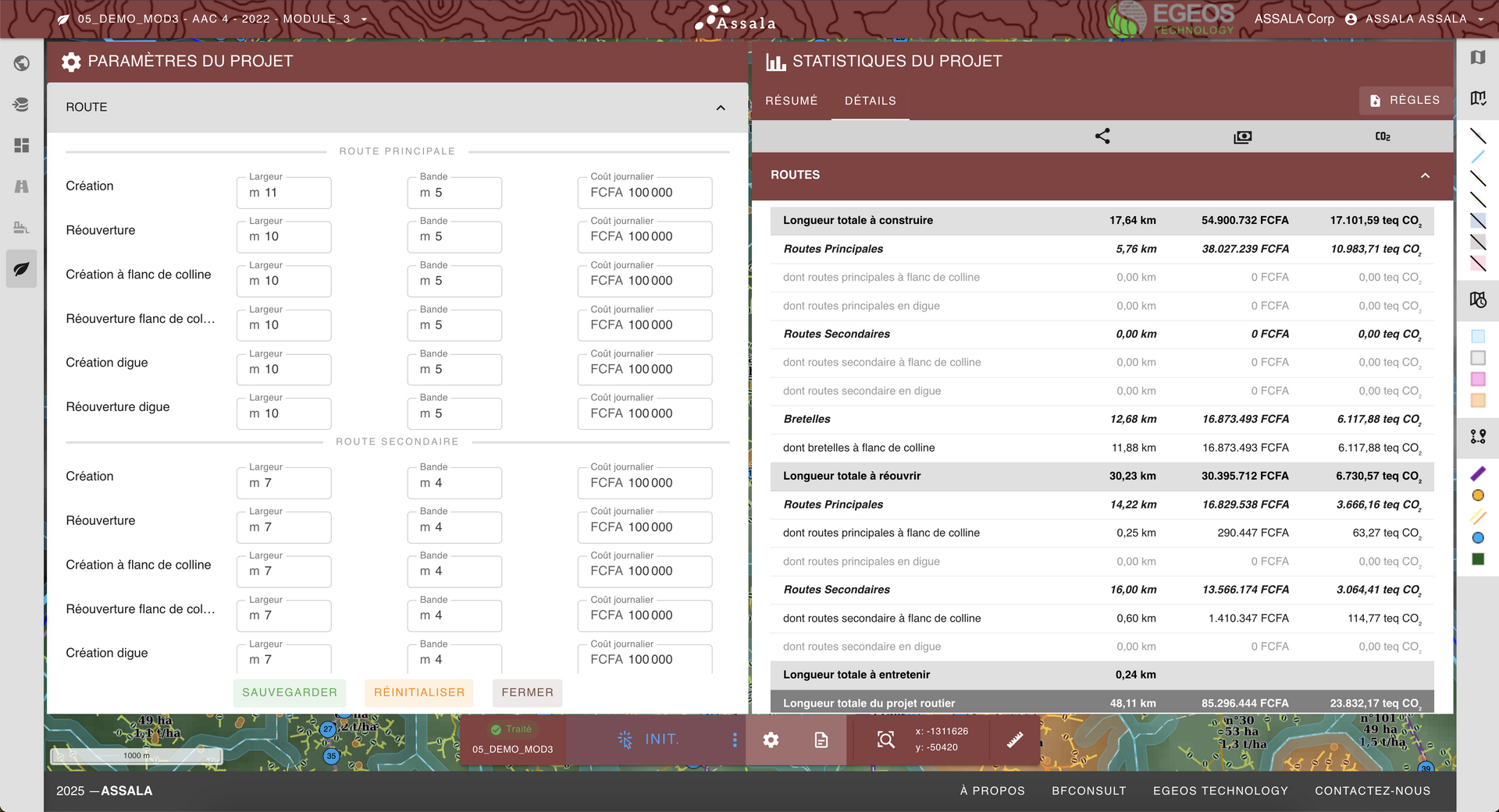Assala est une application webGIS, disponible en ligne sur navigateur et permettant d'optimiser la planification de routes et de pistes dans le but de réduire les coûts, les émissions de gaz à effet de serre (GES) et les impacts environnementaux d'un réseau routier.